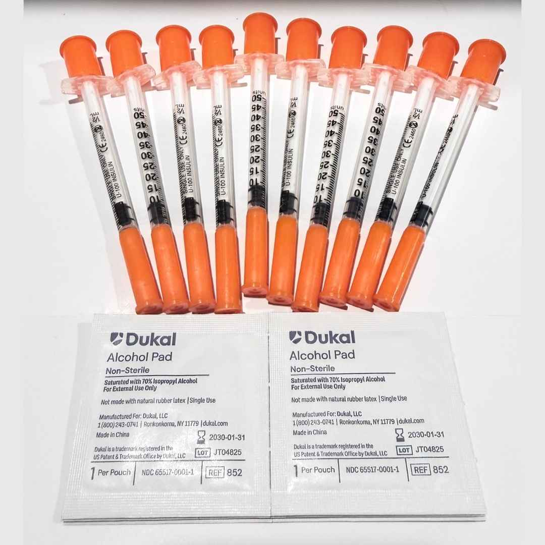 Pack of 10: 0.5ml Insulin Syringes 30G x 5/16” + 10 FREE Alcohol Pads